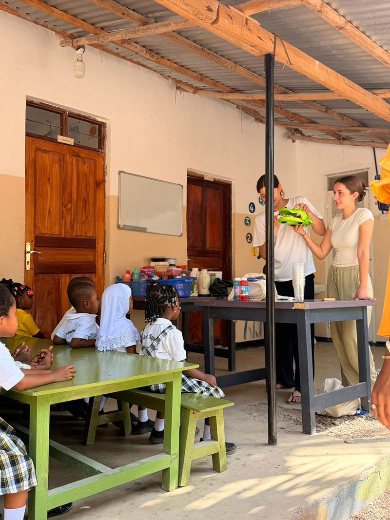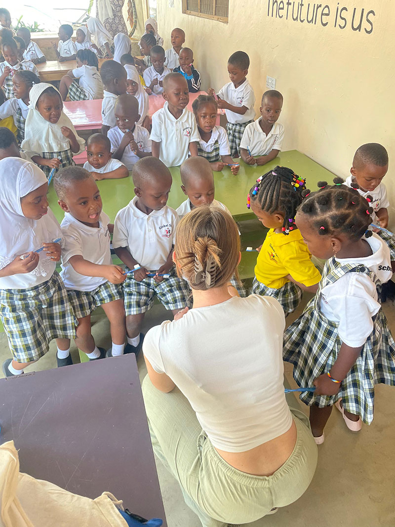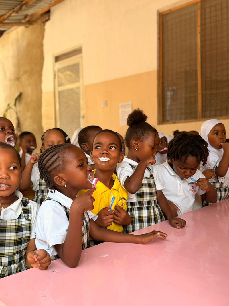 Ein besonderer Moment war ein gemeinsames Zahnputz-Projekt in der Schule. Mit rund 200 Zahnbürsten und Zahnpasten kamen die beiden Volunteers in die Klassen.